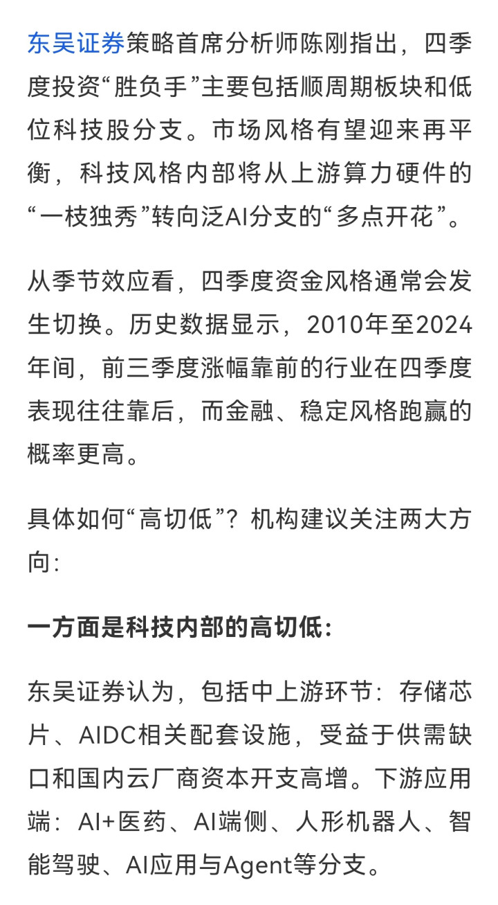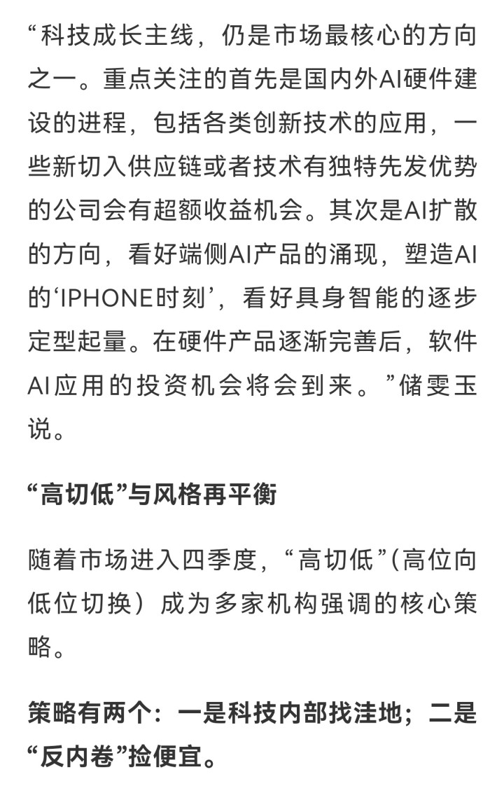 汇巨福配资 机构密集发布四季度策略! 科技成长是主线, “高切低”成胜负手