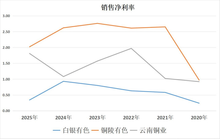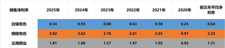盈利能力:铜陵有色>云南铜业>白银有色