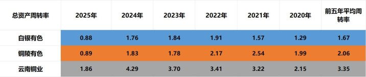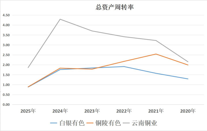营运能力:云南铜业>铜陵有色>白银有色