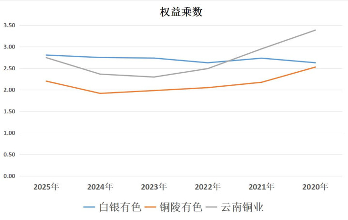财务杠杆:白银有色>云南铜业>铜陵有色